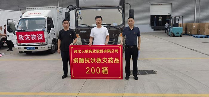 洪水无情,人有情,天成药业为河北省洪水灾区捐赠药品