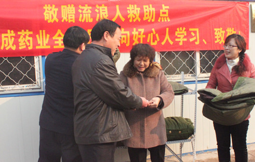 公司领导听到这个消息深受感动,为公司能有这么一位好心的职工感到自豪。天成药业,作为“娘家人”,作为一个有社会责任的企业,更要做好他们坚强的后盾。徐总受董事长总经理王振刚委托代表全体天成人送去1000元现金和十件御寒的大衣,希望这些款物能为那些无家可归的人带去温暖,也希望所有天成人向他们学习。我们的企业宗旨是“制好药·为人民”,我们应该树立为人民服务、已成成人的大爱思想,用自己的爱心来服务企业、服务大众、服务社会。
