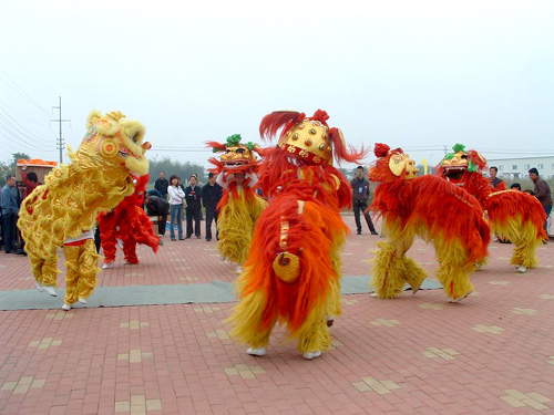 公司邀请曾在奥运会上表演的刘吉舞狮团为庆典助兴