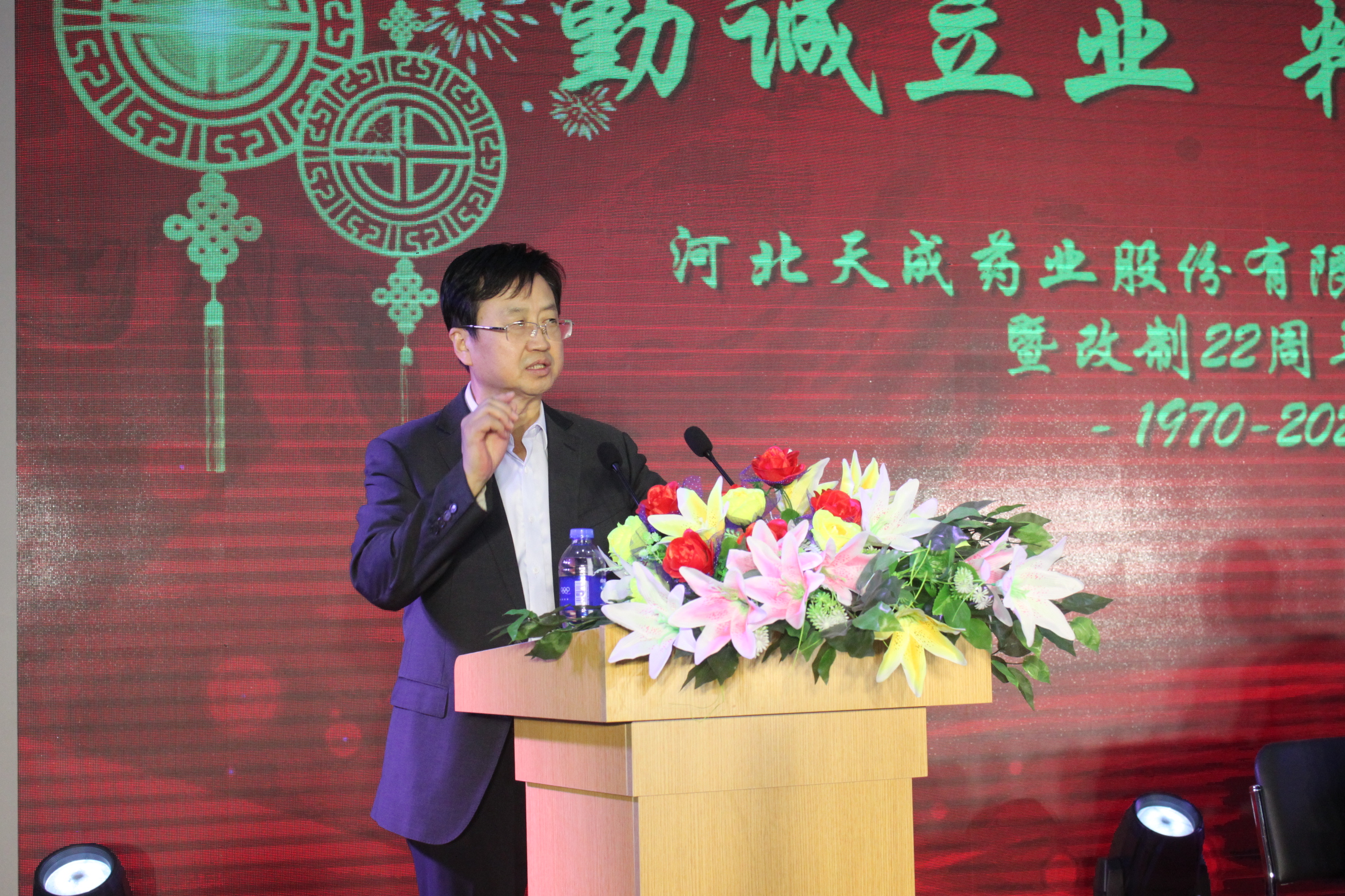 王总首先向一直以来关心、爱护我们的各级领导、社会各界人士、向与天成同舟共济的工商客户、向为天成药业做出贡献的全体离退休员工和在一线的全体天成人及员工家属致以了诚挚的祝福和衷心的感谢。
