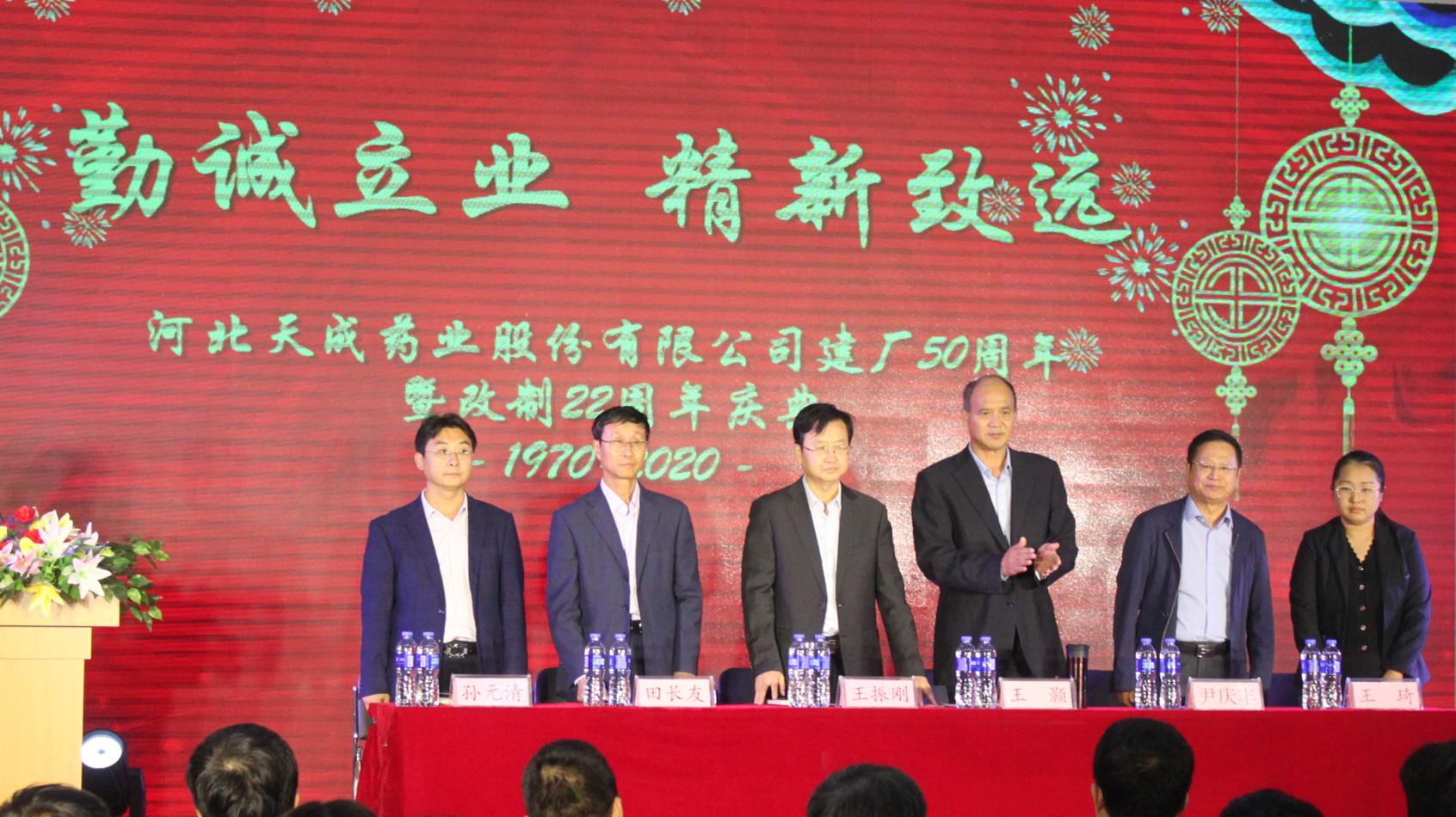 金秋十月,硕果盈枝,承载丰收的喜悦,不仅迎来了祖国71周年华诞和中秋佳节,也迎来了公司建厂50周年、改制22周年的纪念日。为更好地纪念历史,歌颂新老天成人的先进事迹,矢志不移地传承“制好药 为人民”的企业经营宗旨,弘扬“勤诚立业 精新致远”的企业核心文化,9月29日,公司在三分厂活动室举办公司建厂50周年暨改制22周年庆典大会。公司董事会成员、天成药业、道恩药业、渤海分公司、天津药物研究院的干部员工以及部分退休老干部齐聚一堂,共同参加庆典。