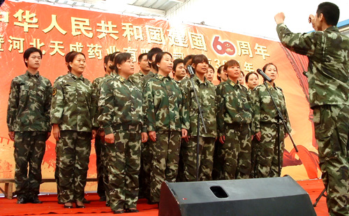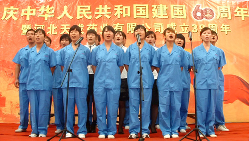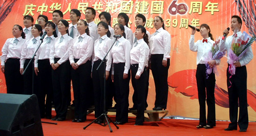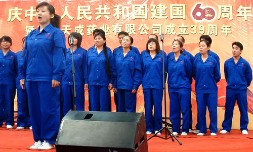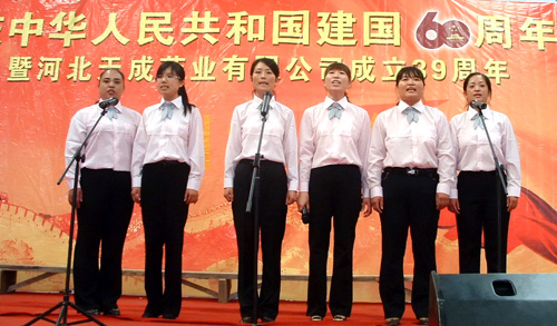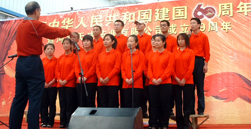 2009年9月29日是我公司建厂39周年改制11周年的日子,又恰逢新中国成立60周年,和着全国人民大庆的节拍,我公司于2009年9月30日举行了隆重的庆典活动。大会由公司副总王顥主持,公司副总田长友在会上做了2009年1-9月份工作汇报,副总徐福河宣读了2009年度工资调整方案,之后公司董事长兼总经理王振刚做了关于企业文化的重要报告。领导讲话结束后,举行了“唱红歌”大合唱歌咏比赛,全公司共有十九个代表队参加了比赛。最后,在全体干部员工“歌唱祖国”的歌声中,庆典活动圆满结束。该活动极大地振奋了干部员工的精神,弘扬了企业文化,为公司今后的发展指明了方向。