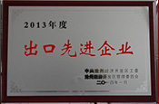 2014年荣获“2013年度出口先进企业” 荣誉称号